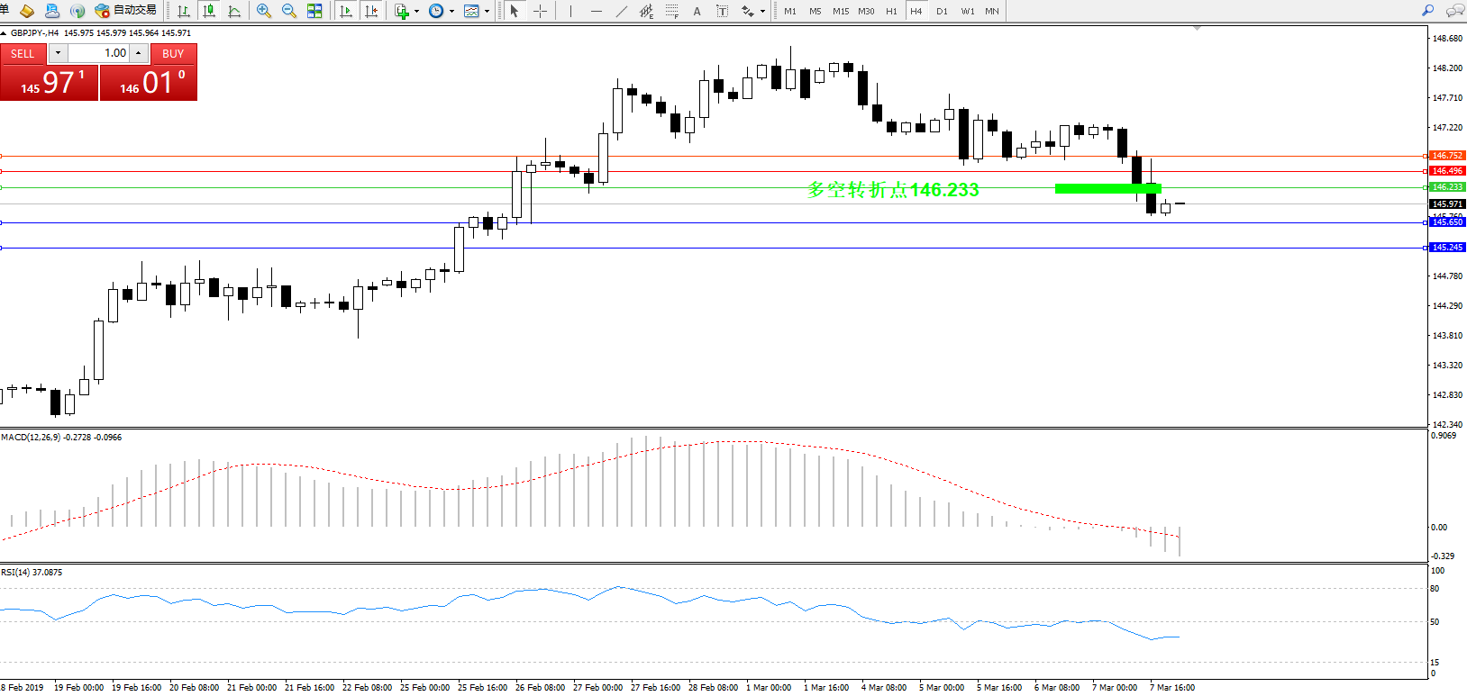 交易策略:146.233下方看跌,目标145.650、145.245