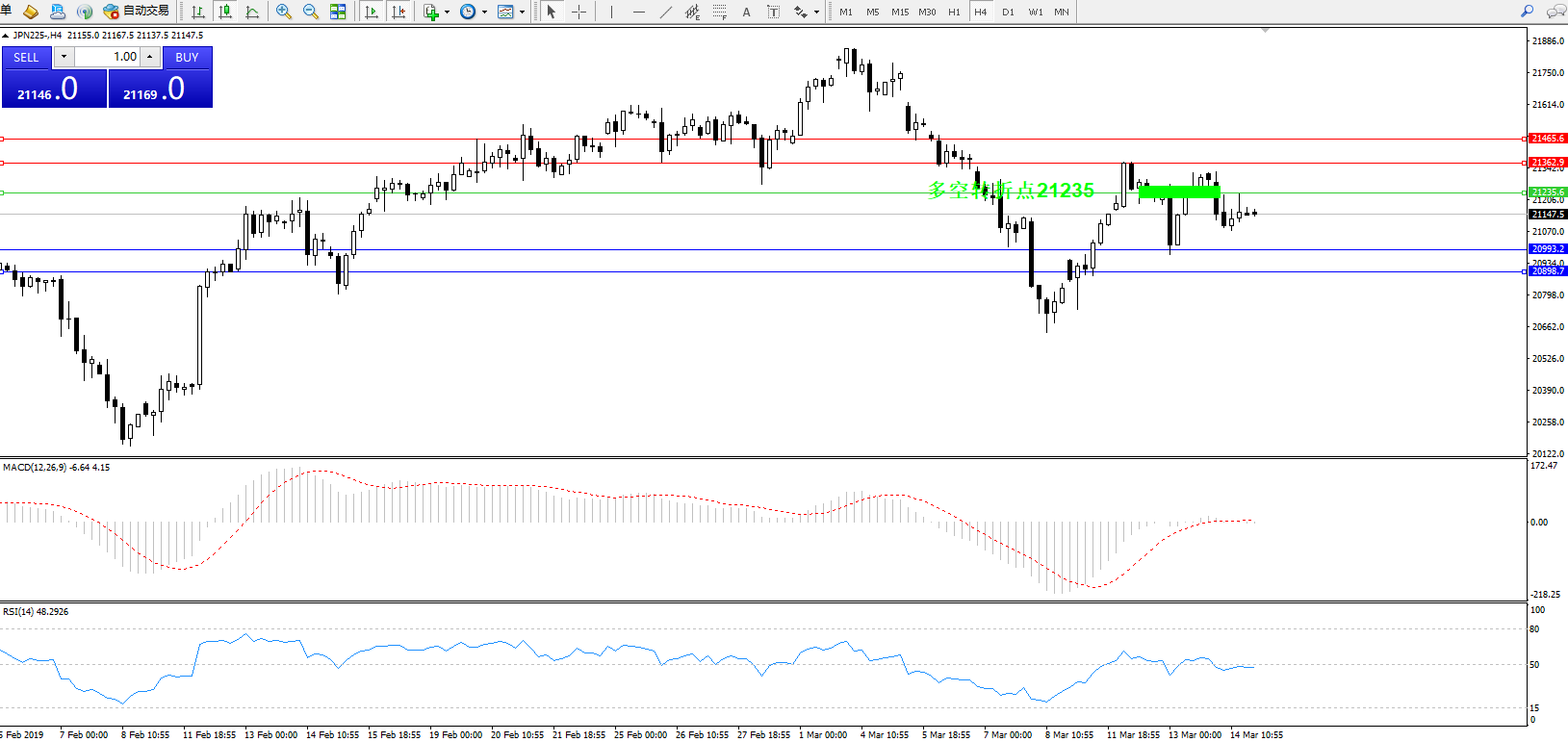 备选策略:21235上方看涨,目标21362、21465