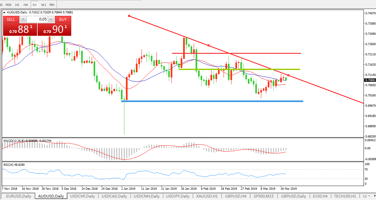 交易策略:在0.7135之下,看跌,目标价位为0.6990,然后为0.6940