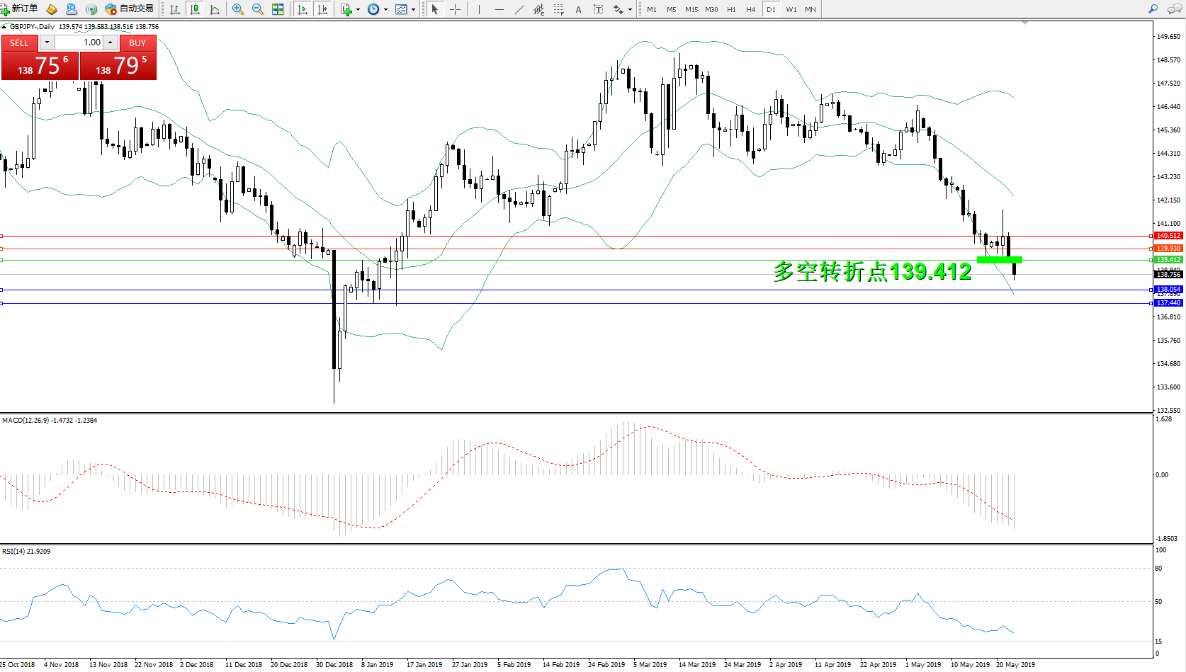交易策略:139.412下方看跌,目标138.054137.440