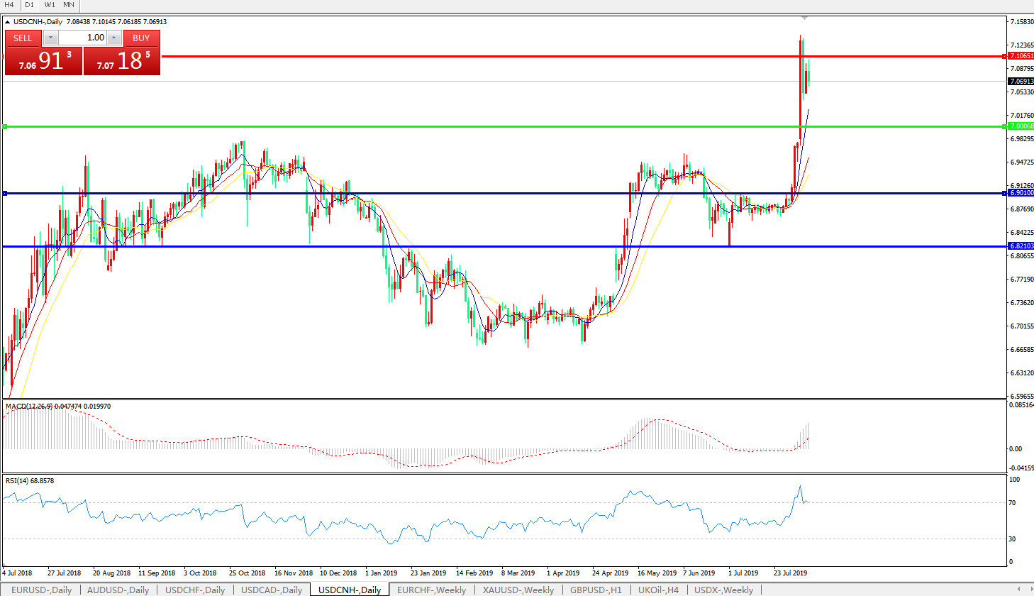 美元兑人民币USDCNH   日线图: