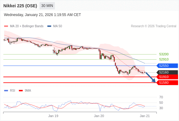 在 52550 之下,看跌,目标价位为 51910 ,然后为 51580 。