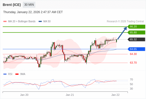 在 64.65 之上,看涨,目标价位为 65.80 ,然后为 66.20 。
