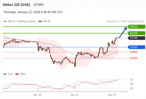 日经225股指期货 (OSE) 当日内: 朝54530运行。