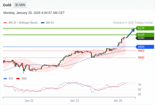 在 5000 之上,看涨,目标价位为 5110 ,然后为 5170 。