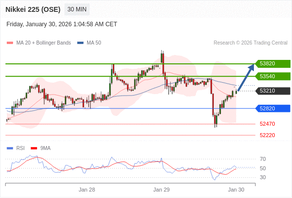 在 52820 之上,看涨,目标价位为 53540 ,然后为 53820 。