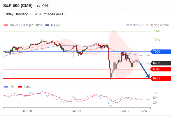 在 7000 之下,看跌,目标价位为 6940 ,然后为 6908 。