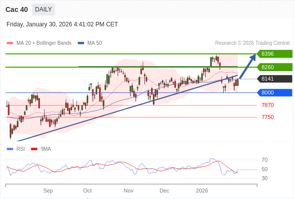 交易策略: 在 8000 之上,看涨,目标价位为 8260 ,然后为 8396 。