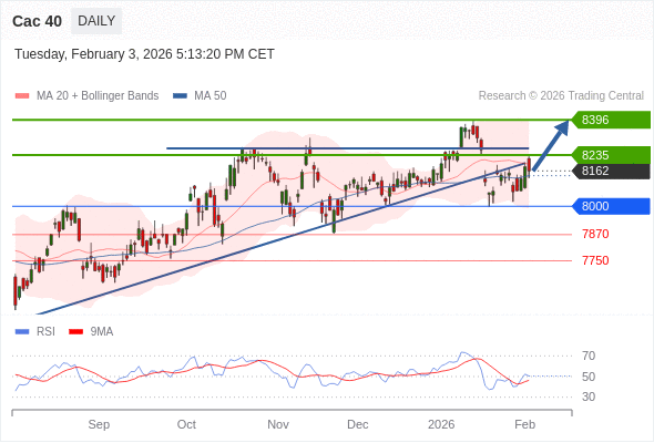 Cac 40 短线: 期待8235。