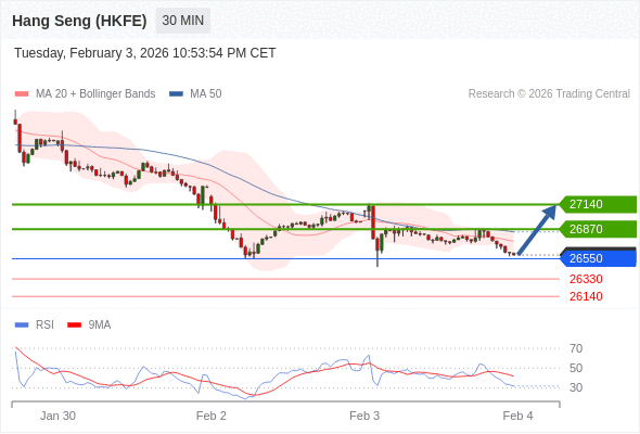 在 26550 之上,看涨,目标价位为 26870 ,然后为 27140 。