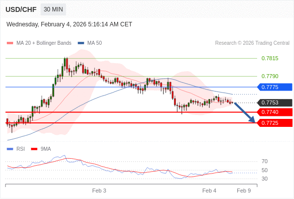 在 0.7775 之下,看跌,目标价位为 0.7740 ,然后为 0.7725 。