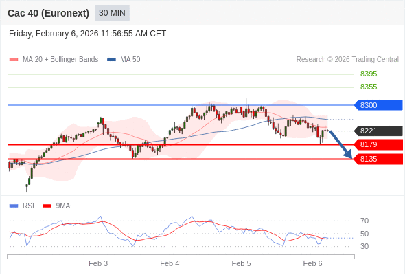 法国CAC指数期货 (Euronext) (G6) 当日内: 调整。