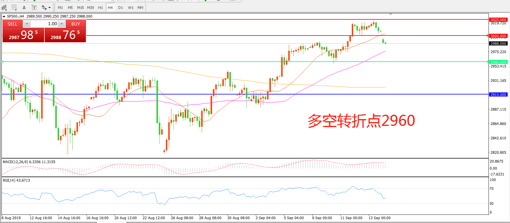 多空转折点:2960.00
