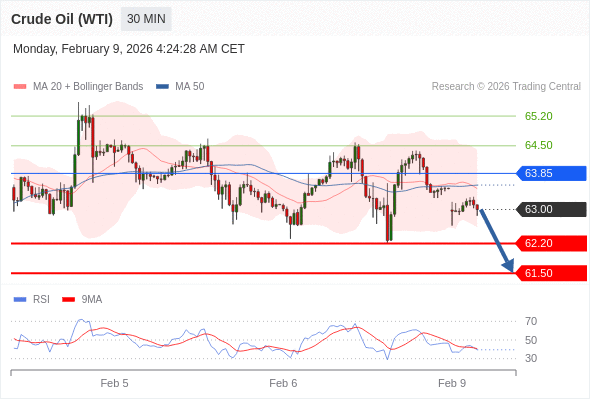 在 63.85 之下,看跌,目标价位为 62.20 ,然后为 61.50 。