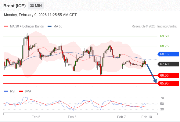 交易策略: 在 68.15 之下,看跌,目标价位为 66.55 ,然后为 65.95 。