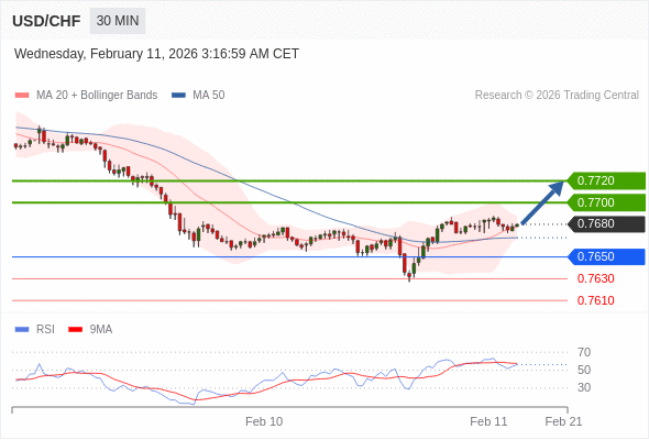 在 0.7650 之上,看涨,目标价位为 0.7700 ,然后为 0.7720 。