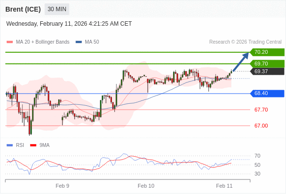 在 68.40 之上,看涨,目标价位为 69.70 ,然后为 70.20 。