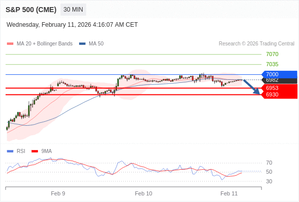 在 7000 之下,看跌,目标价位为 6953 ,然后为 6930 。