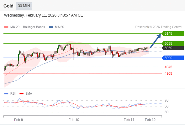 在 5000 之上,看涨,目标价位为 5085 ,然后为 5145 。