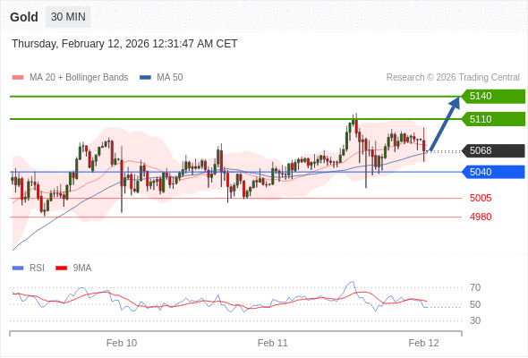 在 5040 之上,看涨,目标价位为 5110 ,然后为 5140 。