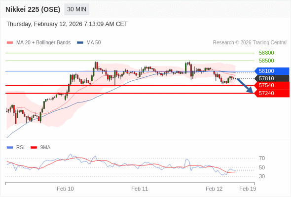在 58100 之下,看跌,目标价位为 57540 ,然后为 57240 。