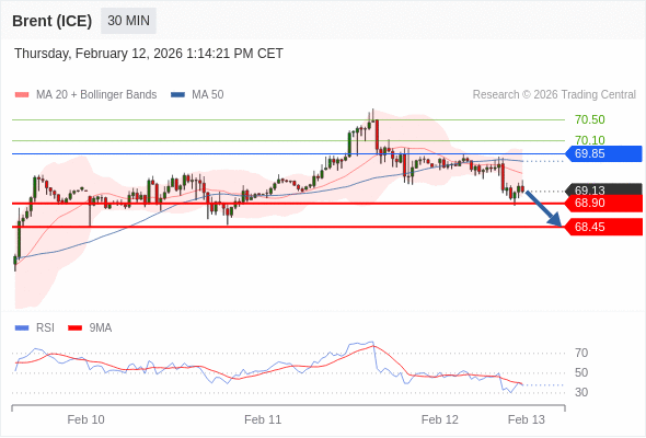 在 69.85 之下,看跌,目标价位为 68.90 ,然后为 68.45 。