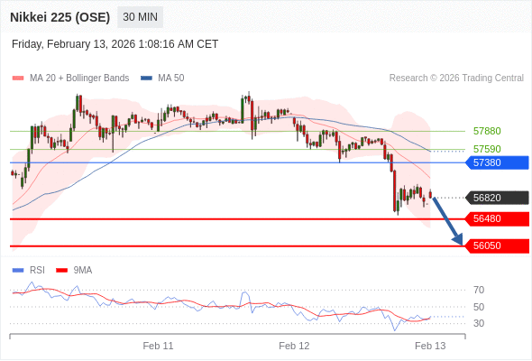 在 57380 之下,看跌,目标价位为 56480 ,然后为 56050 。