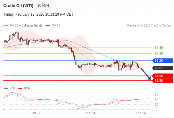 在 63.20 之下,看跌,目标价位为 61.90 ,然后为 61.50 。