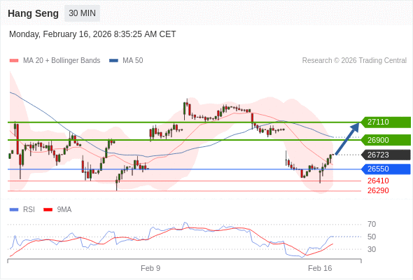 在 26550 之上,看涨,目标价位为 26900 ,然后为 27110 。