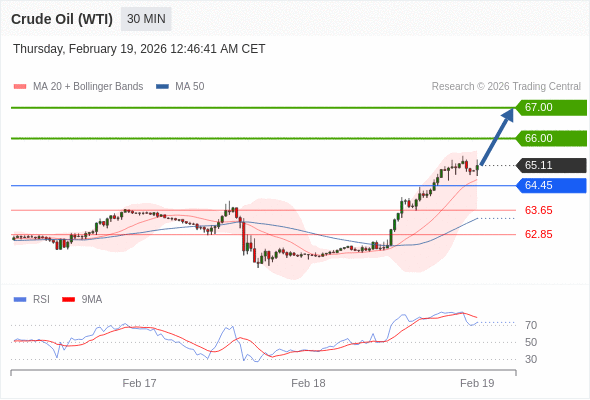 交易策略: 在 64.45 之上,看涨,目标价位为 66.00 ,然后为 67.00 。