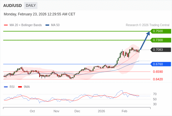 在 0.6760 之上,看涨,目标价位为 0.7300 ,然后为 0.7500 。