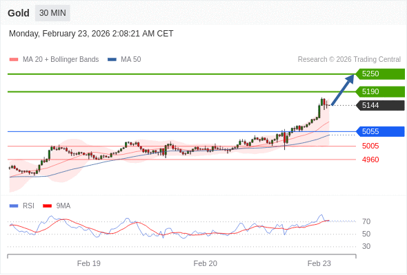 在 5055 之上,看涨,目标价位为 5190 ,然后为 5250 。