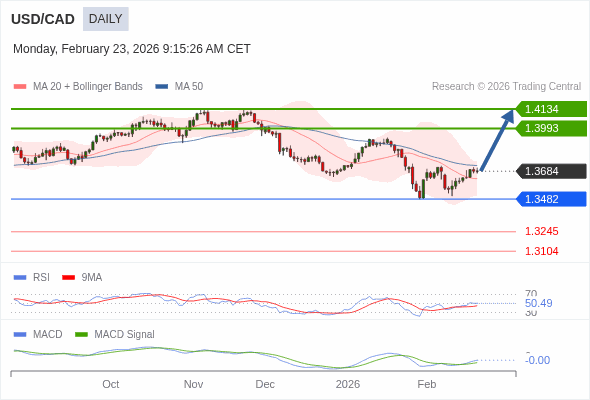 美元/加元 短线 : 看涨。