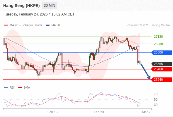 在 26800 之下,看跌,目标价位为 26460 ,然后为 26240 。