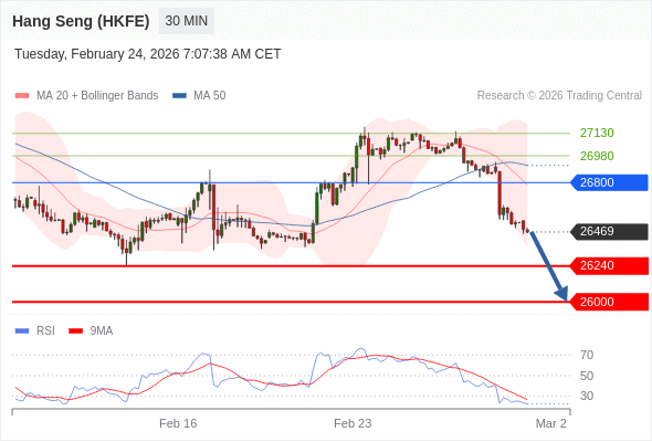 在 26800 之下,看跌,目标价位为 26240 ,然后为 26000 。