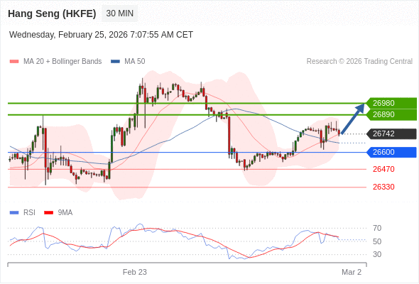 在 26600 之上,看涨,目标价位为 26890 ,然后为 26980 。