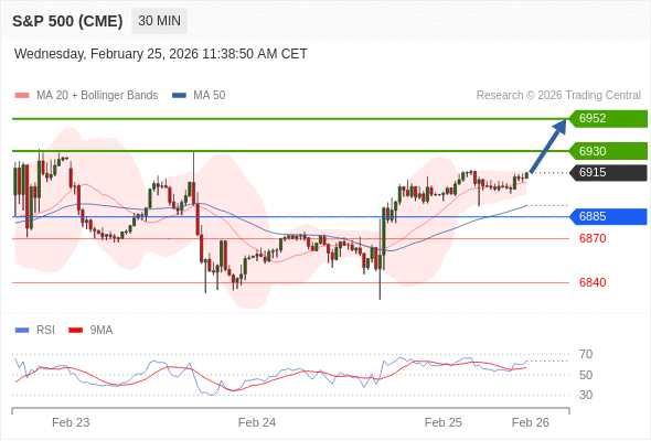 在 6885 之上,看涨,目标价位为 6930 ,然后为 6952 。