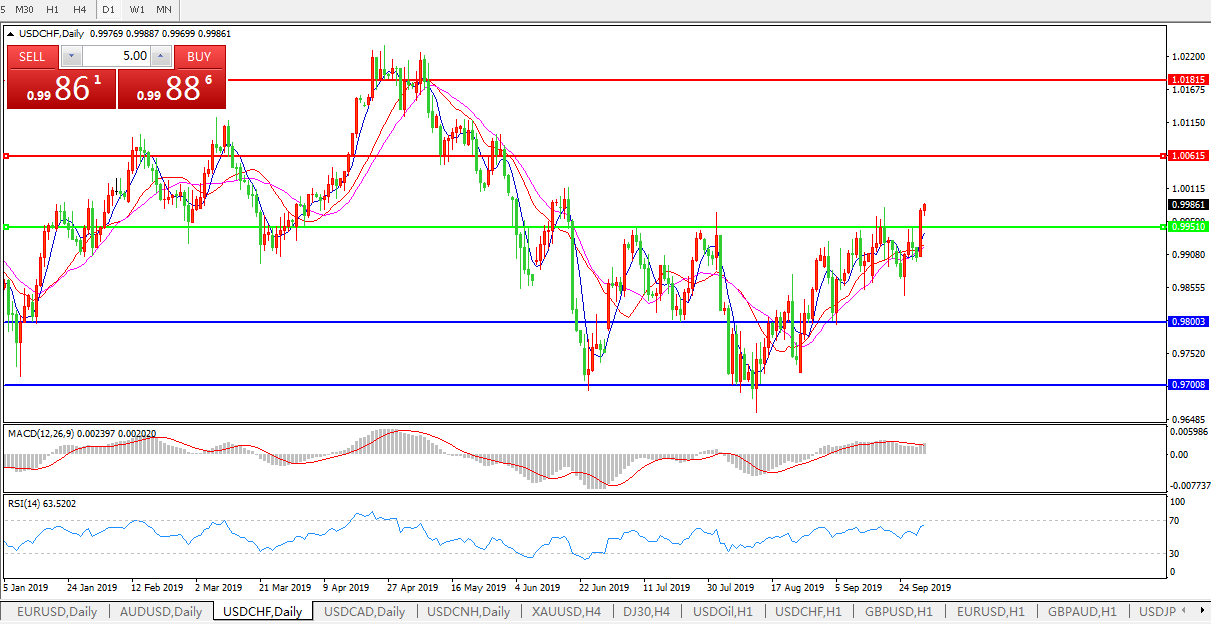 美元兑瑞郎USDCHF    日线