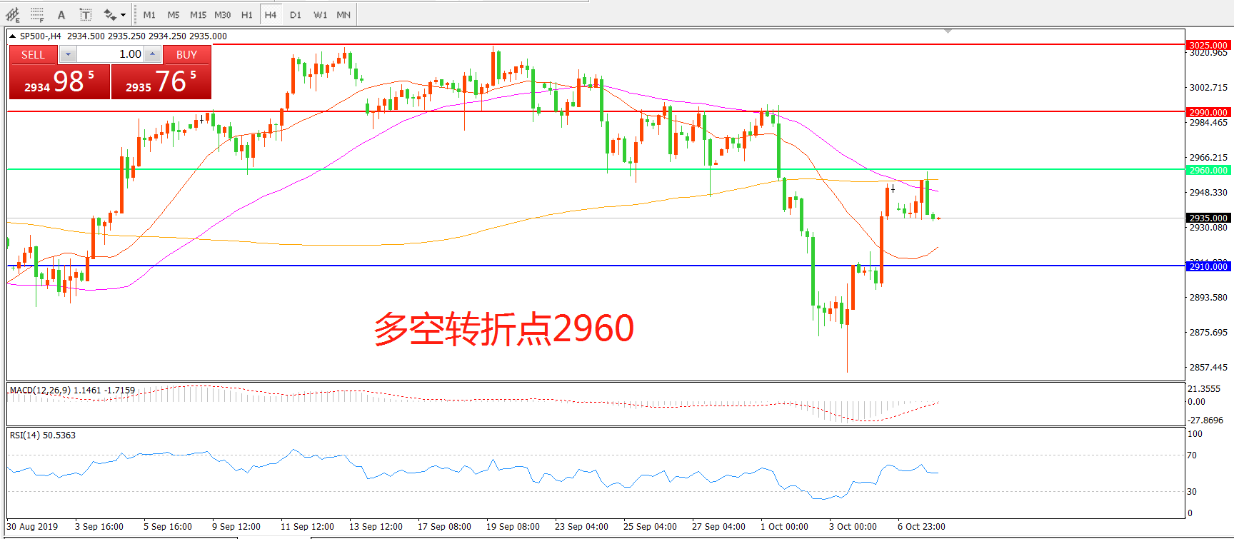 多空转折点:2960.00