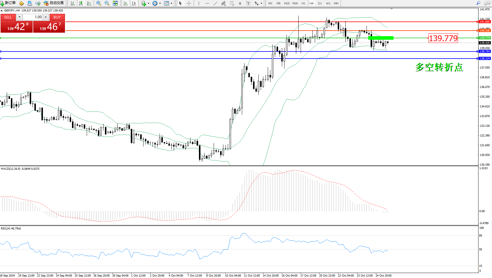 备选策略:139.779上方看涨,目标140.336141.005