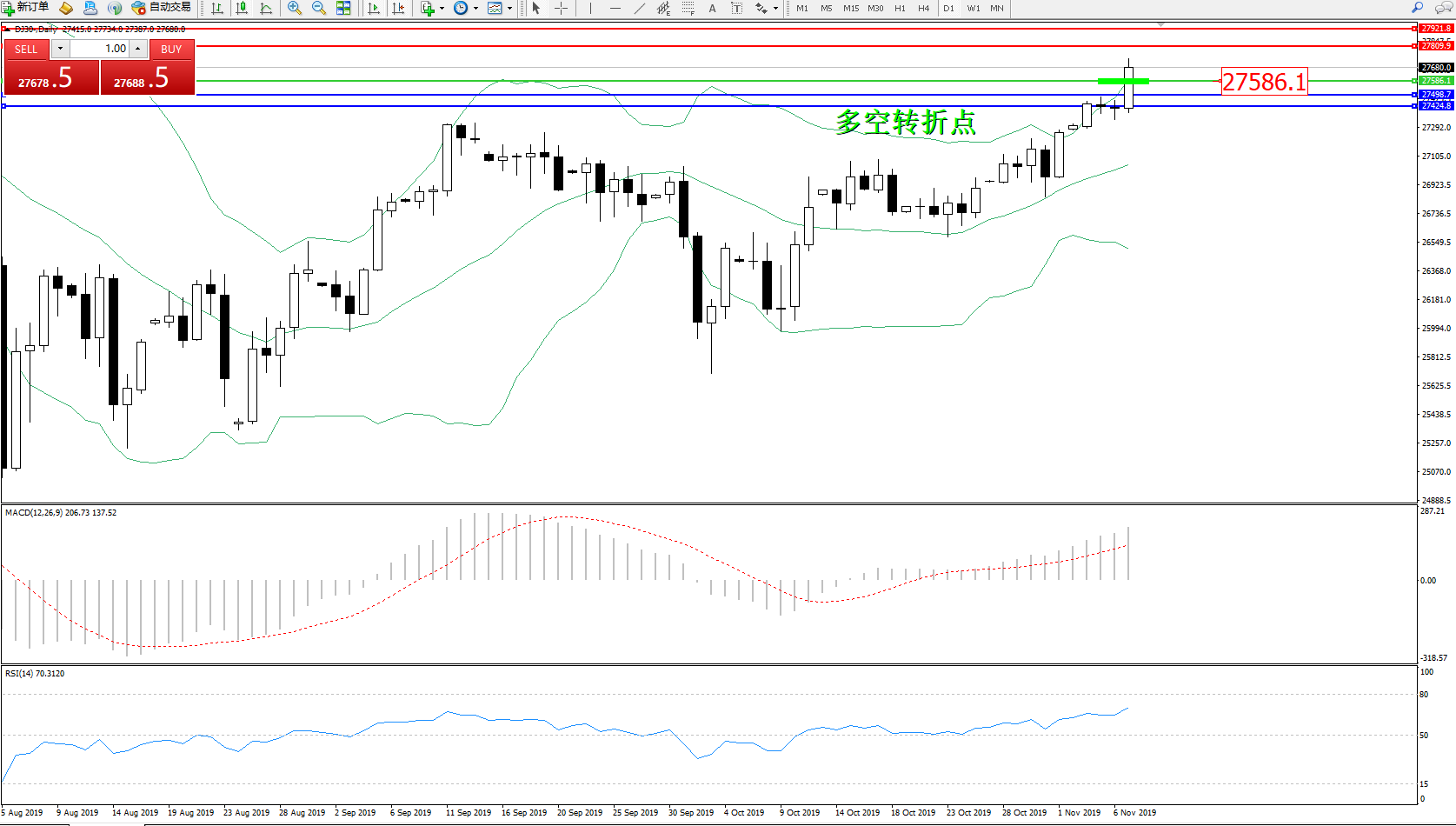 交易策略:27586上方看涨,目标27809、27921