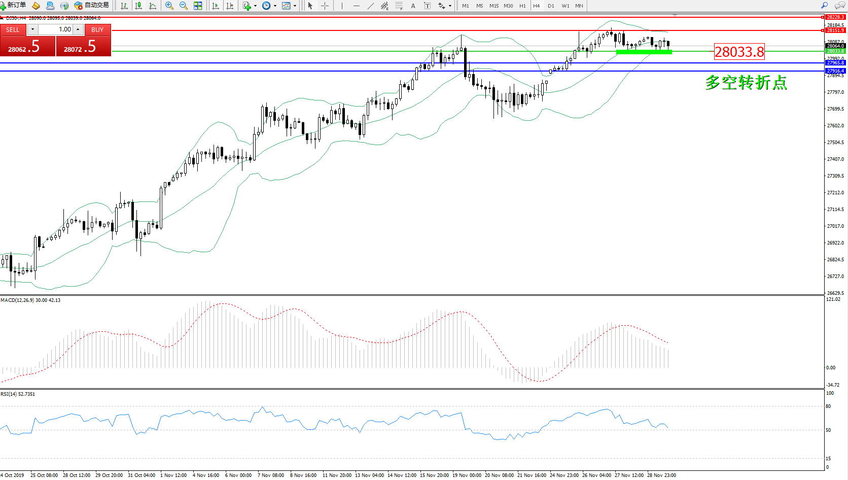 交易策略:28033上方看涨,目标28151、28228