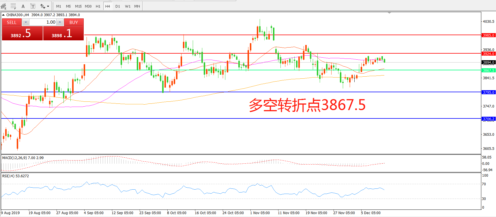 沪深300指数CHINA300 4小时图