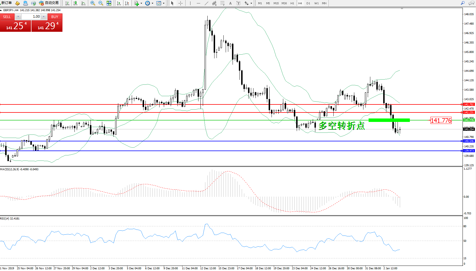 交易策略:141.776下方看跌,目标140.546139.973