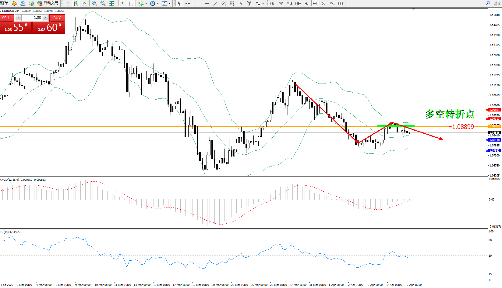 交易策略:1.08899下方看跌,目标1.081481.07563