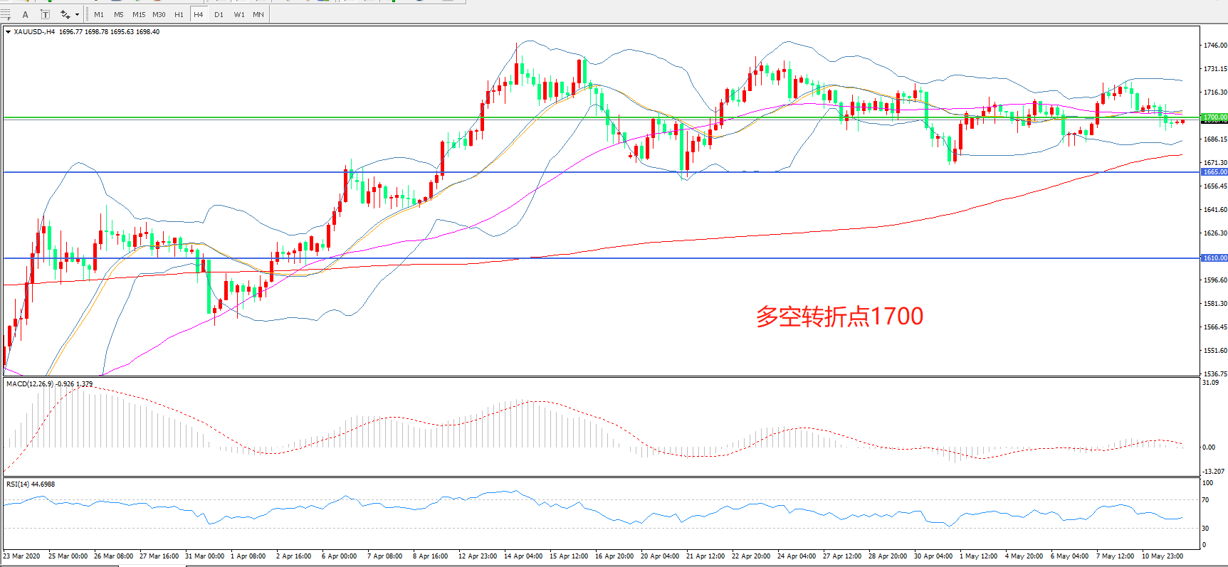 周一(5月11日),现货黄金延续窄幅震荡走势,波幅不大,整体来看避险情绪依然受到抑制,但疫情阴影下风险情绪也没得到显著改善,上下动能均显不足,目前平静中透着压抑的氛围如同暴风雨来临之前的宁静,大行情一触即发!