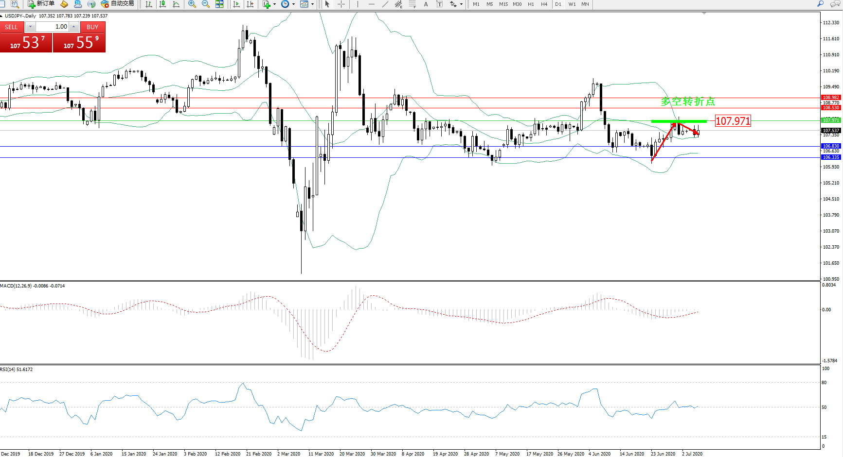 交易策略:107.971下方看跌,目标106.830106.335