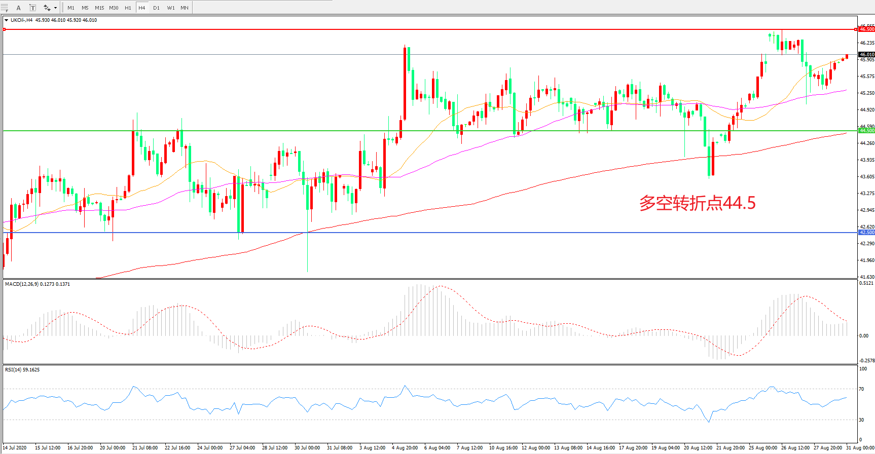 交易策略:  在44.50之上看涨,目标46.50      48.00