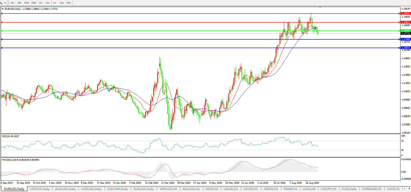 欧元兑美元EURUSD   日线图: