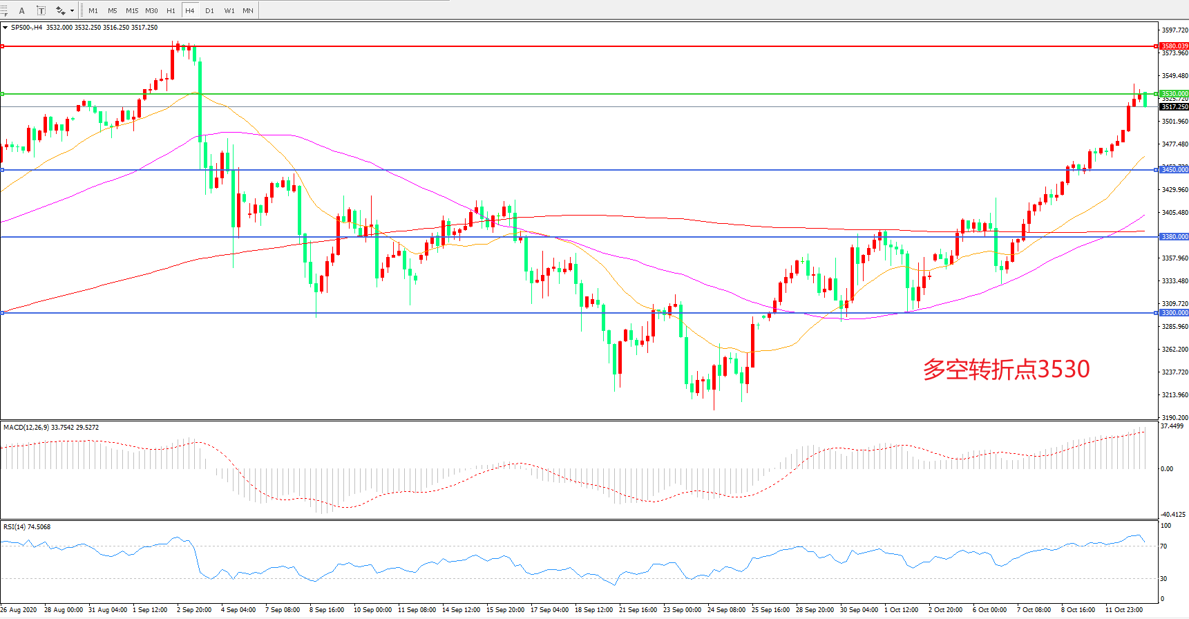 多空转折点:3530.00